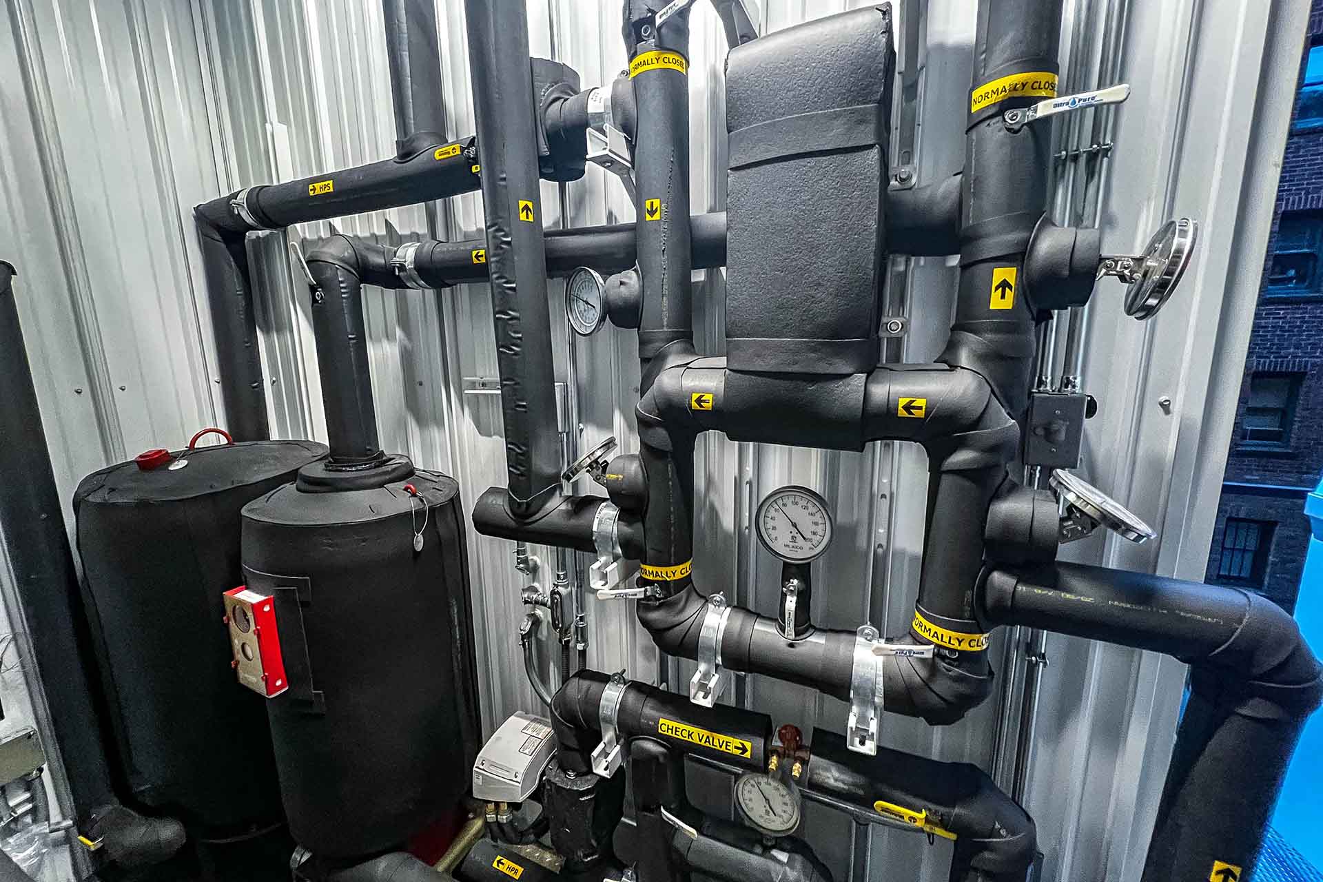 Located in Seattle’s downtown Belltown neighborhood, this 13-story, 100-unit multifamily building offers affordable public housing to the elderly and disabled. Bayview Tower apartments is the first project to use the Mitsubishi QAHV (HEAT2O) heat pump water heater in the United States. When engineers planned this system, they worked with Steffes to design a skid-mounted package that included the heat pump, primary hot water storage and control system. The HEAT2O uses CO2 as a refrigerant—a great candidate for outdoor installations in cooler climates. The value of the skid is that all equipment is plumbed, housed, and ready for hook-up on site. The replacement of the water heating system was accomplished without disrupting water service to the residents for more than a few hours! This project was also the first demonstration of the ability to shift the operation of the system off peak utility demand periods to dramatically reduce peak electric loads at the building.